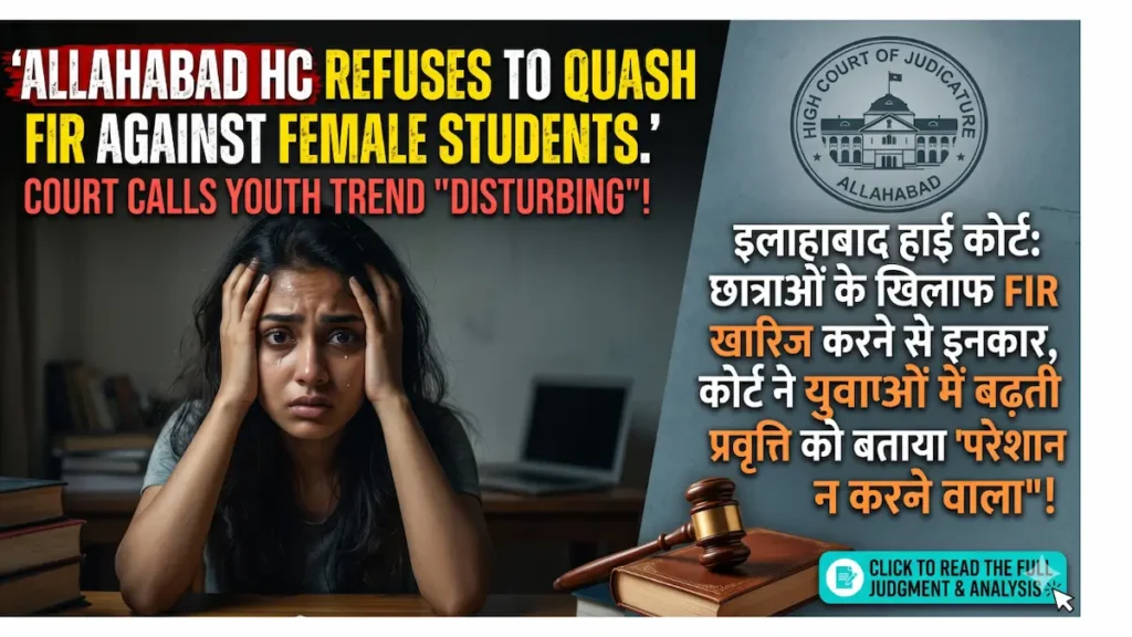 - FIR खारिज करने से इनकार: इलाहाबाद हाई कोर्ट ने दो छात्राओं (18 और 19 वर्ष) की उस याचिका को खारिज कर दिया जिसमें उनके खिलाफ दर्ज FIR को रद्द करने की मांग की गई थी।