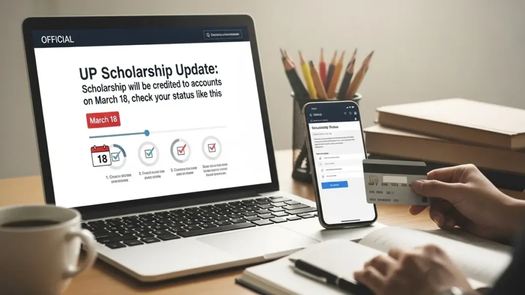 उत्तर प्रदेश के लाखों छात्रों के लिए बड़ी खुशखबरी है। UP Scholarship की राशि 18 मार्च 2025 को सीधे छात्रों के bank accounts में भेजी जाएगी। Uttar Pradesh सरकार ने यह जानकारी official तौर पर जारी की है। जिन छात्रों का verification पूरा हो चुका है और जिनका नाम final list में है — उनके खातों में यह पैसा DBT यानी Direct Benefit Transfer के जरिए आएगा।